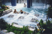 沖擊保養泉 利用自高處往下沖之動力水柱,沖擊上半身之頭、頸、肩、背部,進行強力按摩,藉以消除全身緊張性。消除肩、頸酸痛不適,并減輕偏頭癥,松馳上半身筋骨與消除疲勞。 |