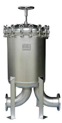 袋式過濾器是通過濾袋,在壓力的作用下,使原液通過濾袋,由被支撐濾藍支撐的過濾袋頂部流入,這使得物料在整個過濾表面能得到均勻分布,過濾介質中流線分布是一致的面,沒有紊流的負效應。液體從過濾袋內流向袋外,濾出的顆粒雜質被截留在過濾袋內部,使得更換過濾袋時不致污染下游的液體,同時也使過濾系統清洗方便。設計在過濾袋內的提手使更換濾袋快速便捷。支撐濾籃的尺寸可由高強度鋼板沖孔制造,也可由不銹鋼絲網而成,這給袋式過濾系統提供了一個大而暢通的過濾表面,從而保證了過濾系統流量大,體積小,防止過濾袋纖維遷移,保證了很高的過濾效率。過濾袋的過濾介質主要有表面過濾網狀材料,深層過濾針氈材料和深層吸附材料。在過濾袋內可安裝專用磁棒或放置活性炭、硅藻土,以去除鐵性雜質或吸附有機物。
